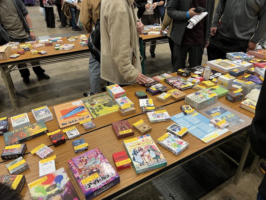 展示ホールや出展ブースごとに、さまざまなジャンルのボードゲームやカードゲーム、テーブルトークRPG、シミュレーションゲームなどが販売されていました。
